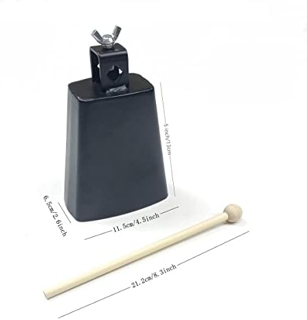 - Package:The cow bell set include one cow bell and one drum stick(8.3 inch),the cow bell size is 5X4.5X2.6 inch