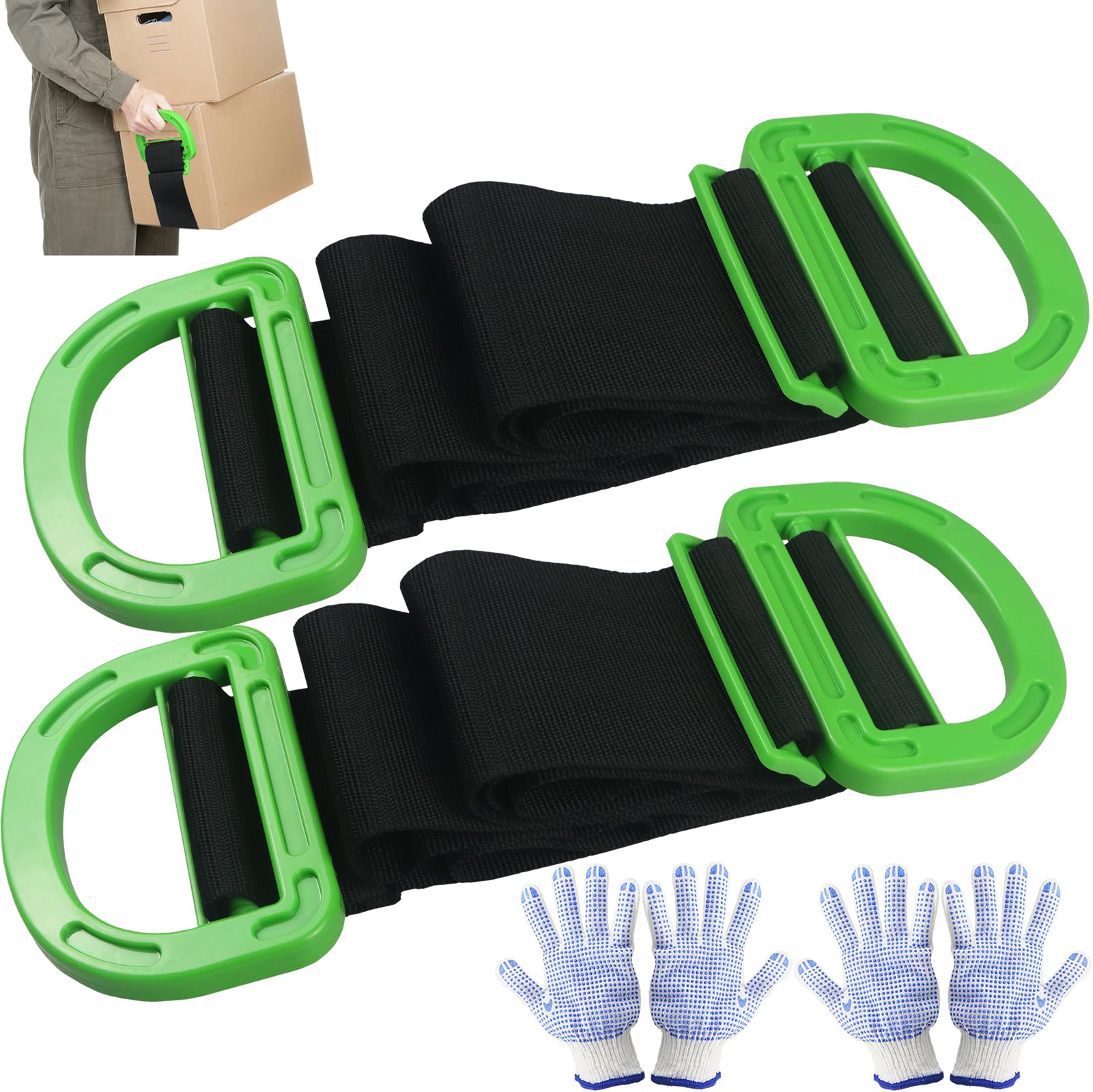 - Comfortable and Ergonomic Design: Featuring a 6-inch wide handle made from ABS plastic, the 1-Person Lifting Handle Straps provide a comfortable grip, complemented by anti-slip gloves that enhance safety and ease of use while lifting and moving heavy items.