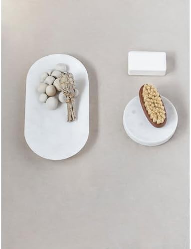 White marble soap dish; Add a touch of style to any kitchen or bathroom with this artfully crafted soap dish; Made from 100% marble; Soap dish measures 5" L x 5" W x 1" H
