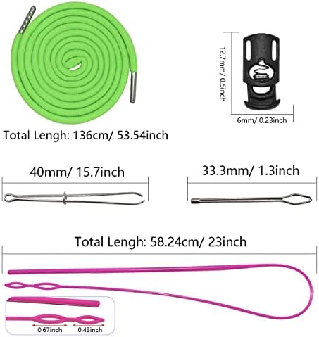 24 Pieces replacement drawstrings universal drawstrings with 4 pieces flexible drawstring threader easy drawstring threader for sweatpants shorts hoodies pants. Specifications: 12-Colors Replacement Drawstrings Length: 135cm/53 inches Diameter: 6mm Quantity: 24pcs of replacement drawstrings Replacement drawstring cord could widely used in pants, sweatpants, shorts, hoodies, scrubs jacket,s swim trunks, shoe laces, tote bags. 10 Pack Sing-Hole Cord Locks: Hole diameter: 6mm/ 4in Length*Width: 25* 13 mm/1* 0.5in Color: Black Material: Nylon 2 Pcs Drawstring Threader: Length: 23 Inchs Color: Pink& Blue This Drawstring Threader can help you save a lot of time and trouble when Replacement Drawstrings,re-thread your drawstring Easy to Use: This drawstring threader can help you save a lot of time and trouble when drawstrings replacement, re-thread your drawstring. You just need thread drawstring through either eye or weave through both eyes to hold tightly, and then insert blunt end of threader into casing, pull threader through casing until drawstring is completely threaded in casing Wide Applications: Use this trim for adding an additional fashion or replacement drawstring cord for your pants, sweatpants, shorts, hoodies, scrubs jacket,s swim trunks, shoe laces, tote bag. Packing Including: 10 pcsSingle Hole Plastic Cord Locks 24 pcs Replacement Drawstrings 1 pcs Pink Easy Threader 1 pcs Blue Easy Threader 1pcs Metal Tweezers 1pcs Metal Threader