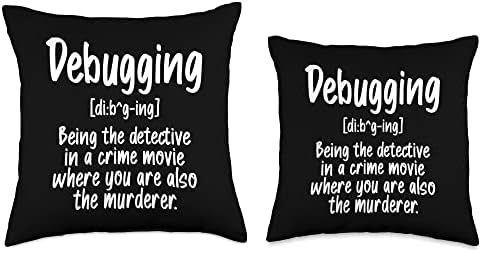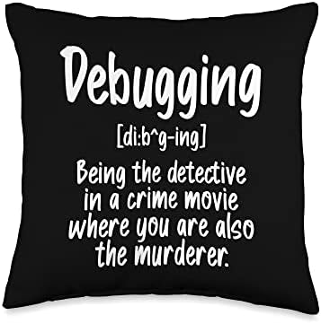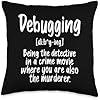 Comical Debugging t shirt Computer Software Developer Throw Pillow