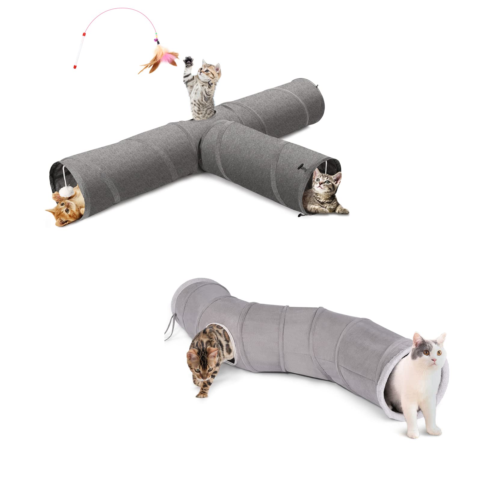 - More Ways to Have Fun: We provide drop balls and peep holes in cat tube for your cat to have extra recreational activities. The drop ball toy hanging in the middle of channel can drive the cat’s curiosity to explore.Additional feather wand can increase the interaction with your cat.