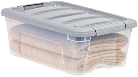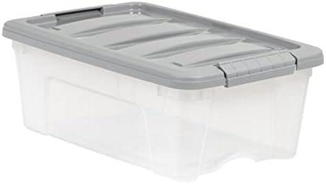 Amazon Basics 12-Quart Stackable Plastic Storage Bins are suitable for a variety of organization and storage needs. This pack of organizer bins contains six, 12-quart clear plastic bins with gray lids. These clear organizers allow for quick visual identification of contents. With their stackable design, these storage bins with lids save space while keeping your space tidy. The secure latching lids shield your belongings from dust, moisture, and pests. Suitable for under-the-bed storage, office organization, and a variety of other uses, the lightweight and portable design of these plastic containers with lids for storage makes rearranging and carrying them easy.