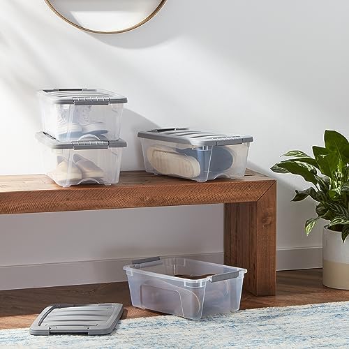 Amazon Basics Plastic Storage Containers with Secure Latching Lids, Stackable Organization Bins, Clear/Grey, 12 Quart, Set of 6