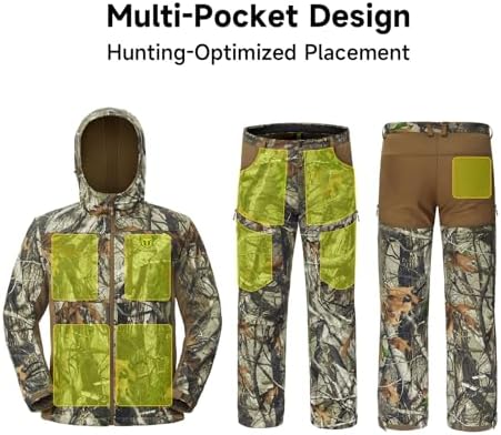 • 【Diseño de 9 bolsillos】El traje de caza tiene 9 bolsillos colocados estratégicamente. La chaqueta tiene cuatro bolsillos, mientras que los pantalones tienen cinco. Mantienen tus manos calientes en actividades al aire libre y son lo suficientemente grandes como para guardar cualquier equipo que necesites llevar encima.