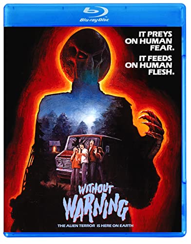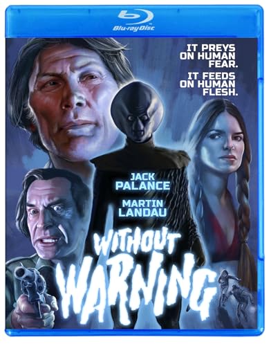 From Greydon Clark, the legendary cult director of Satan’s Cheerleaders, Angels Brigade, The Return, Wacko, Joysticks, Final Justice and Uninvited, comes the ultimate in extraterrestrial terror—Without Warning. It’s an alien. It preys on human fear. It feeds on human flesh. It comes with flying, bloodsucking jellyfish. And it’s here! A group of teenagers, a grizzled hunter and a crazy war veteran wage a life-and-death battle against the insidious invader. Be warned, there can be only one survivor. The alien—or Earth. Humanity depends on Jack Palance (Sudden Fear), Martin Landau (The Being), Tarah Nutter (Chilly Scenes of Winter), Christopher S. Nelson (Roller Boogie), Cameron Mitchell (Silent Scream), Neville Brand (Eaten Alive), Sue Ane Langdon (The Evictors), Ralph Meeker (Kiss Me Deadly), Larry Storch (Sweet Sixteen), Lynn Theel (Humanoids from the Deep), Darby Hinton (Hi-Riders) and David Caruso (King of New York) to defeat the evil E.T. (Kevin Peter Hall, the predator in Predator). Ace cinematographer Dean Cundey (The Thing) lensed this classic creepfest and effects whiz Greg Cannom (Bram Stoker’s Dracula) created the freaky fiends from outer space. Don’t say we didn’t warn you!