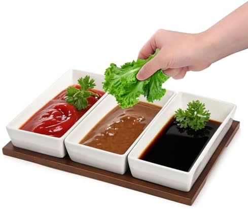 - 𝐏remium 𝐌aterials: Divided serving bowls are made from high-quality ceramic that is food safe, lead-free and chip-resistant. The tray is crafted of natural oak wood, highly resistant to warping and moisture.