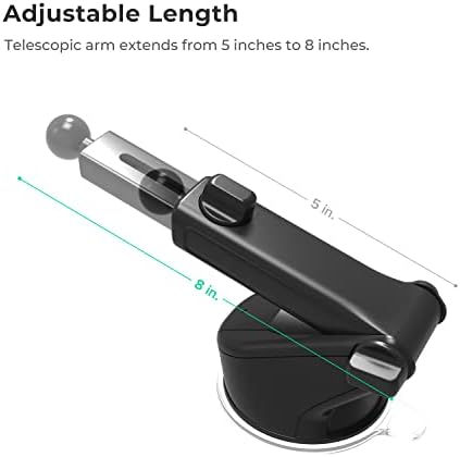 - TELESCOPIC ARM: Telescopic arm extends from 5 inches to 8 inches and pivots 260 degrees. This enables a myriad of customized viewing angles while on the road.