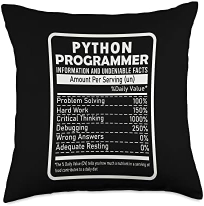 Funny Python Programmer Nutritional Facts Python Programming Throw Pillow