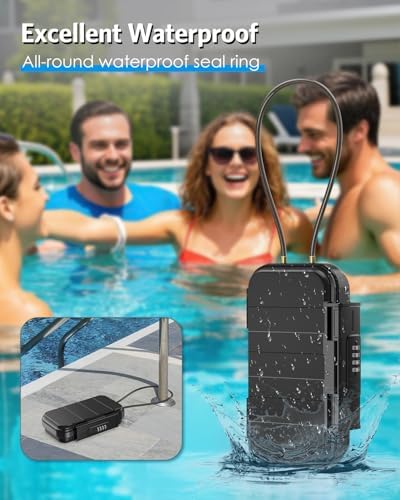 - Easy to Carry and Practical: Our mini safe lock box comes with a removable sturdy wire chain. Meant that you could both be in the pool or on the beach at the same time without having to worry that items had been left unattended. It is also lockable with code for privacy. Ideal for taking exactly what you need, anywhere, at any time