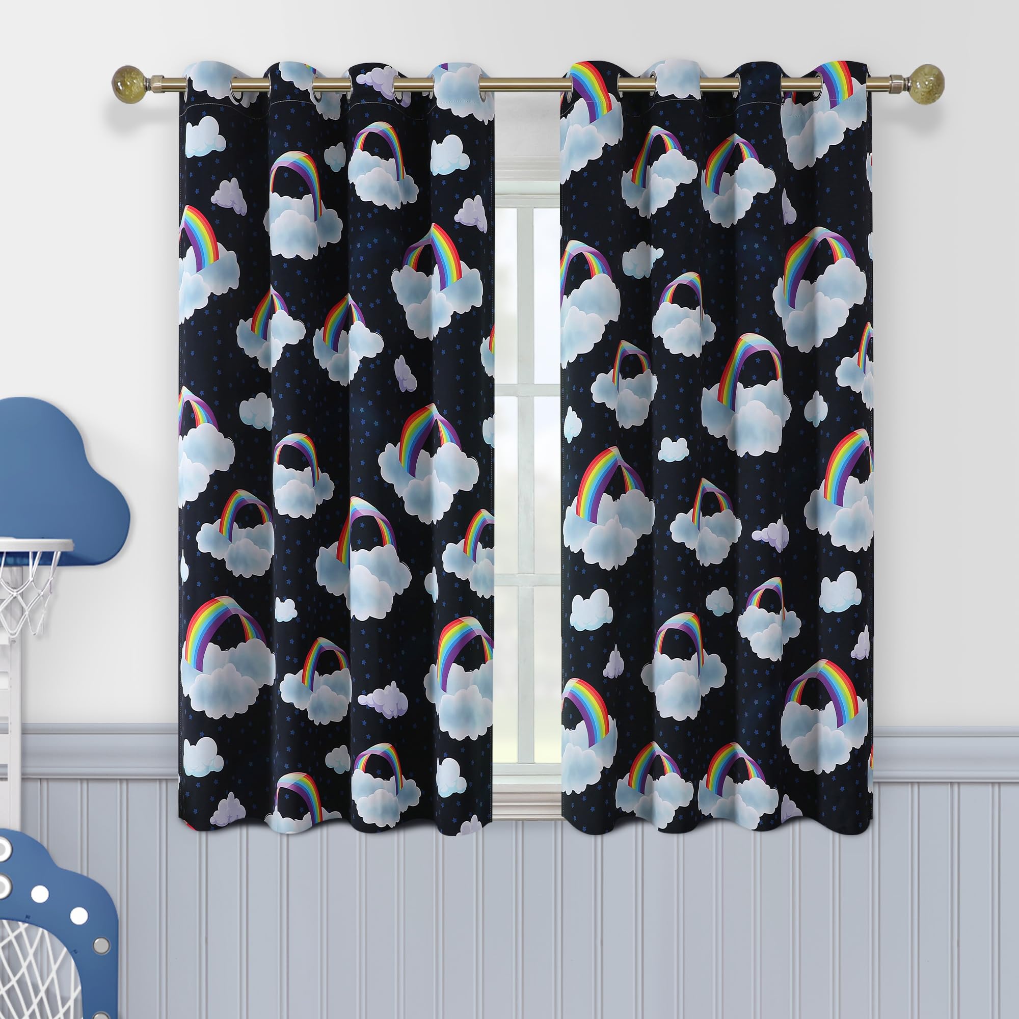 PACKAGE INFORMATION: The package include 2 panels curtain come with 2 tiebacks. Each panel has both the 1 layer of tulle attached 1 layer of colorful star curtain. Grommets top(1.6 inch inner diameter), each curtain measures 52 inches wide, more length for you choose.