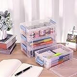 BTSKY 4 Pack Extra Large Plastic Pencil Box Stackable Translucent Clear Pencil Caase Crayon Box Set, Marker Organizer Art Supply Storage Organizer for Gel Pens Pencils Erasers Tape Markers etc(Blue)