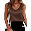 Ekouaer Womens Silk Satin Tank Tops V Neck Casual Cami Sleeveless Camisole Blouses Summer Basic Tank Shirt