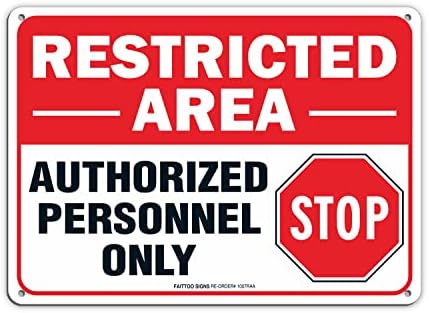 Faittoo Restricted Area Sign Authorized Personnel Only, Do Not Enter Sign, 10 x 7 Inches .40 Rust Free Aluminum, UV Protected, Waterproof, Weather Resistant, Durable Ink, Easy to Mount