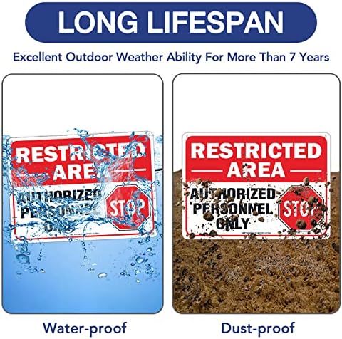 - "Restricted Area Sign Authorized Personnel Only, Don Not Enter" signs bright and alarming black red on white design will get people's attention, prevent unauthorized people enter.