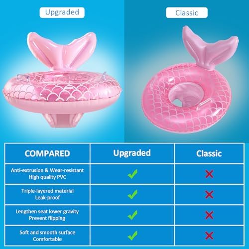 KISSHAKE Baby Pool Float, Mermaid Baby Swimming Float, Smart Swim Trainer, Inflatable Pool Floats for Toddlers, Infant Swim Floats, Toddler Floaties, Kids Beach Toys Summer Essentials