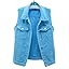 Women's Casual Denim Waistcoat Slim Fit Frayed Sleeveless Jacket Ripped Tops with Pockets
