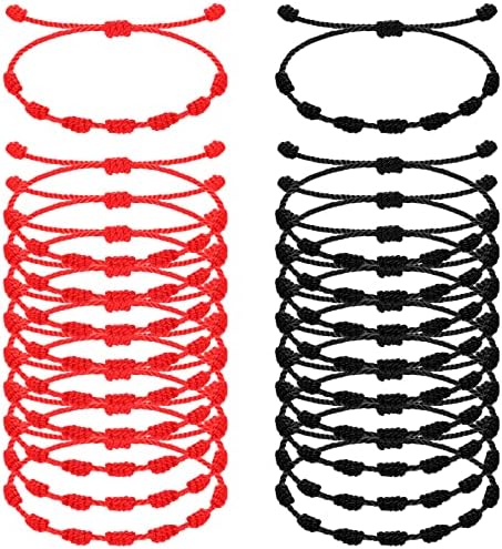Jadive 20 Pcs Red Protection Good Luck Bracelet Red String of Fate Adjustable Bracelet Braided Knot Kabbalah Rope for Lover Couple Friend Women Men