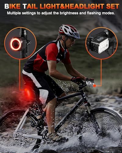 - BIKE HEADLIGHT AND TAIL LIGHT ALARM SET: Get both bike lights front and back set at the same time. The main front light and red rear light have multiple settings which can adjust the brightness and flashing sequence. The ultra-bright bike lights can illuminate a wide area, attracting the attention of car drivers and ensuring safety during night commuting.