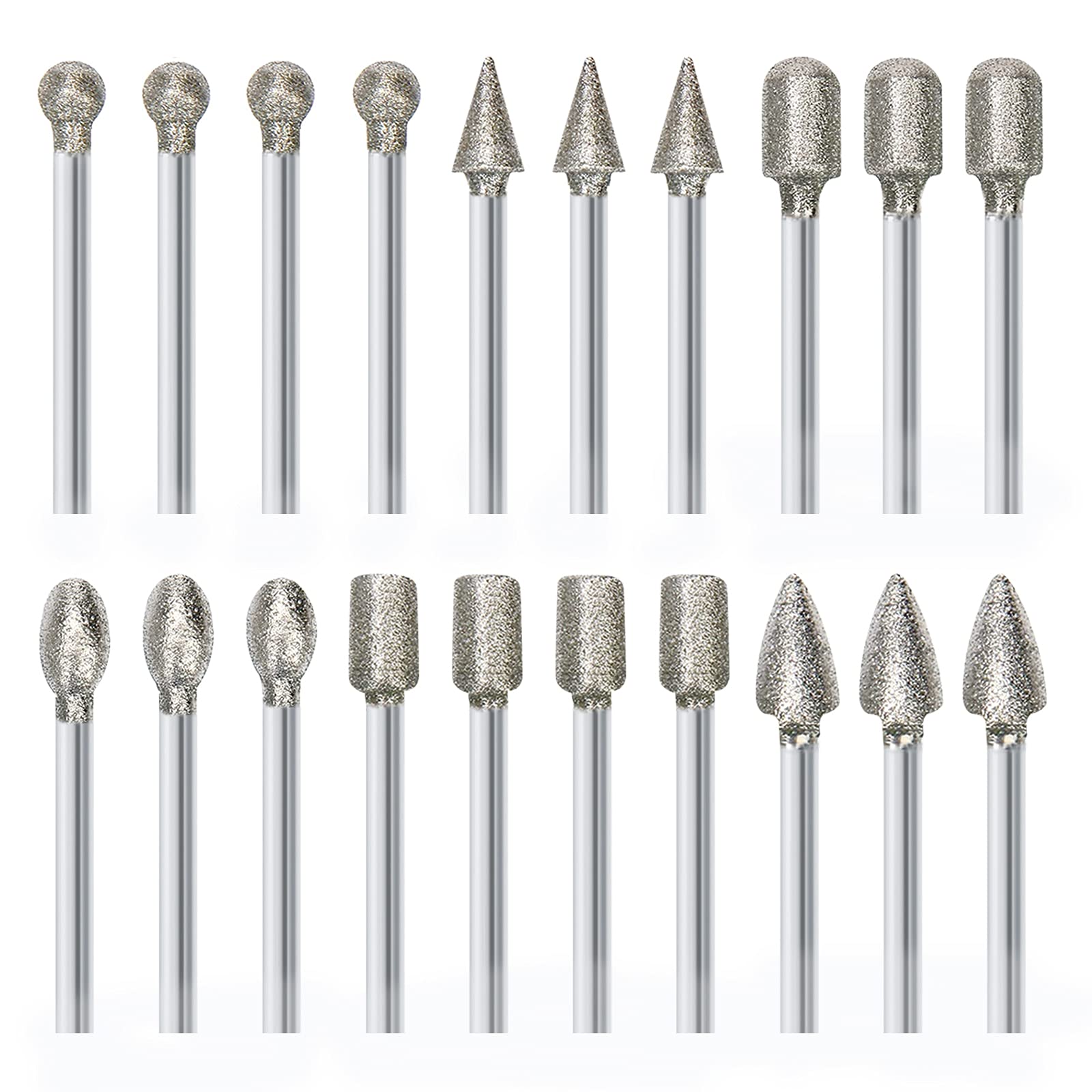 Diamond Grinding Burr Bit Set,20Pcs Rotary Tool Accessories Stone Carving Set with 1/8 inch Shank for Stone Ceramic Glass Carving, Grinding, Polishing, Engraving, Sanding