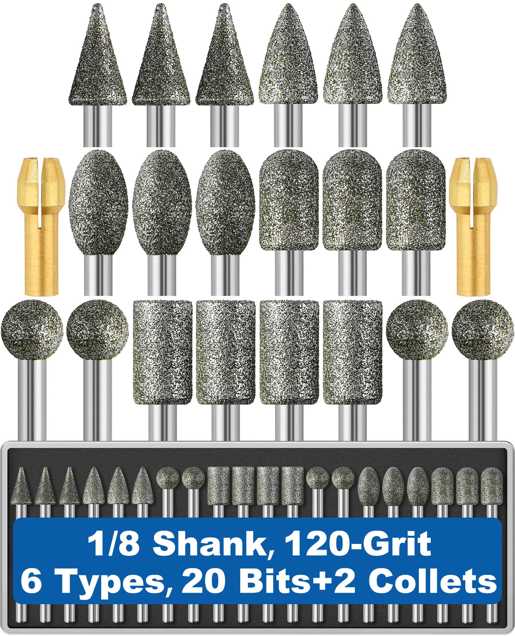 - 【Quality Gurantee】: You will get 20 pcs diamond grinding bits packaged in a durable clear case. If any issues with quality, leave us a message and we will provide a 100% satisfactory solution