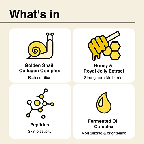 - COMPLÉXIDO ESENCIAL DE SNAIL PARA LA HIDRATACIÓN: Este bálsamo multi-humectante para arrugas contiene un complejo de colágeno de babosa dorada. Este complejo de babosa en nuestra crema de colágeno ultra reparador y reafirmante fortalece la barrera de humedad de la piel, haciéndola firme y proporcionando un rico efecto suavizante e hidratante.