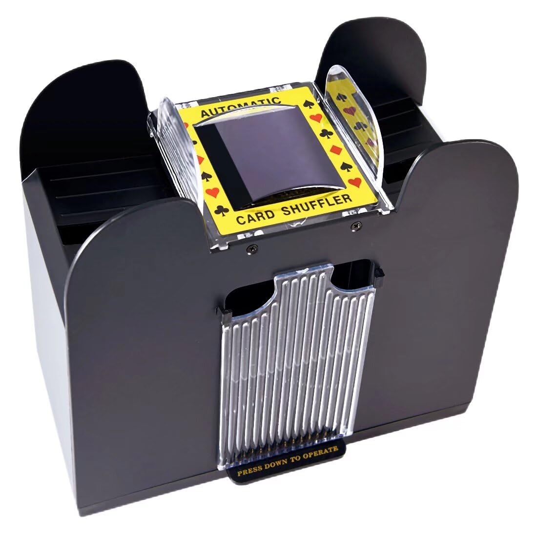 - FAST & EASY TO USE - Just gently press the switch at the bottom of card dealer machine and in seconds the card collection tray will effectively shuffled cards, up to 1-2 decks of cards.