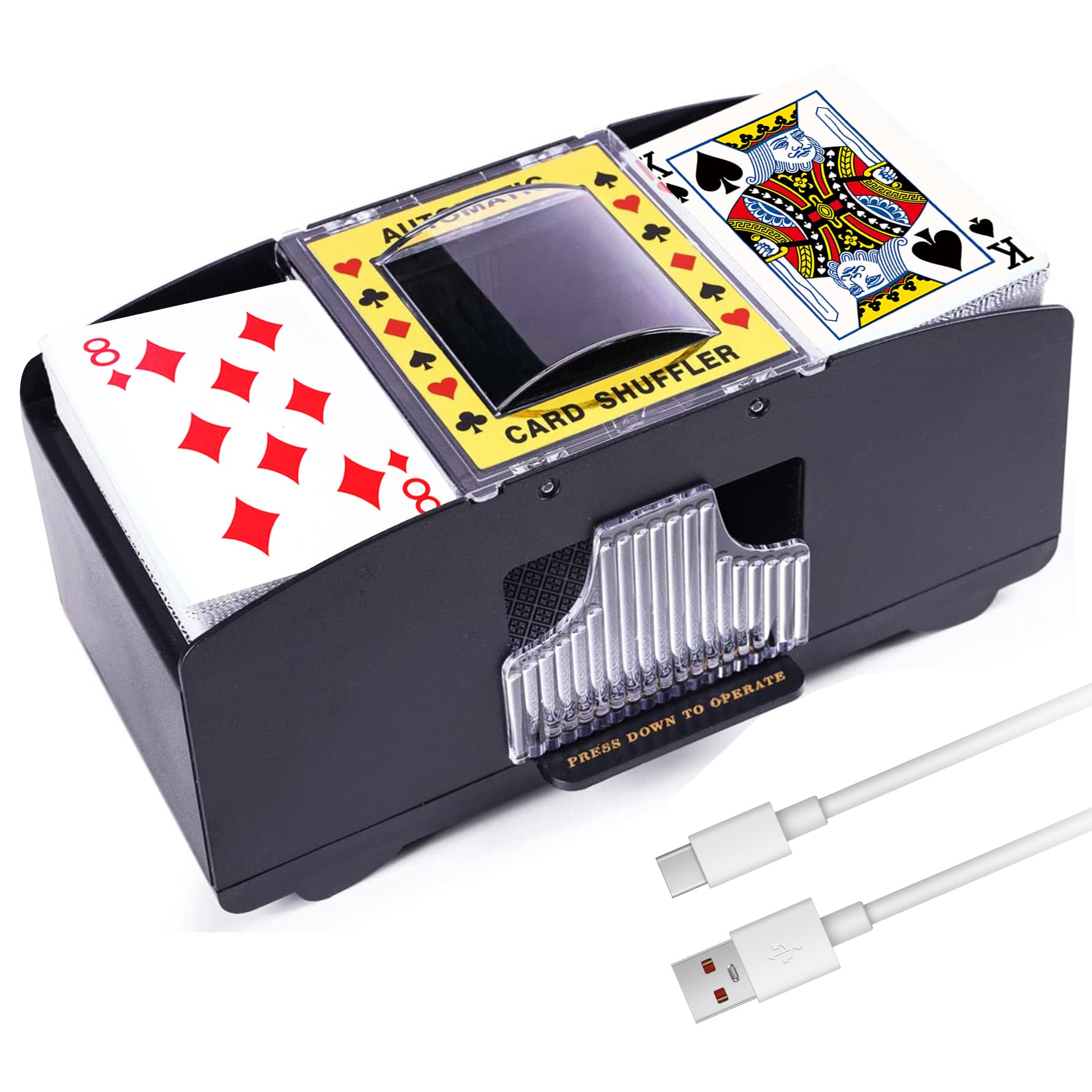 - AUTOMATIC CARD SHUFFLER - Rareidel 2 deck card shuffler only need 4 AA batteries to work. It can save a lot of shuffling time, more time to enjoy the fun of playing card games.