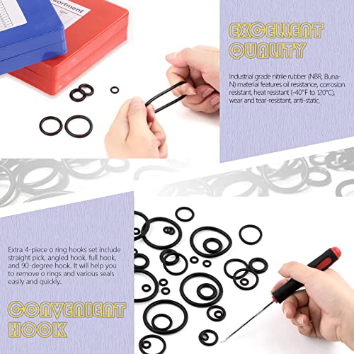 - 💯 What You Get -------- In this kit, You will get 834Pcs SAE and Metric Rubber O-Ring Washer with Long and Short Pick and Hook Assortment Kit, Including 407pcs SAE universal rings and 419Pcs Metric universal rings. Provides sealing and prevents leaking for a wide range of applications such as plumbing, machinery, hydraulic & pneumatic repairs and much more. These hooks and picks are perfect for removing hoses, moldings, clips, clamps, seals, O-rings, cotter pins, gaskets and more!