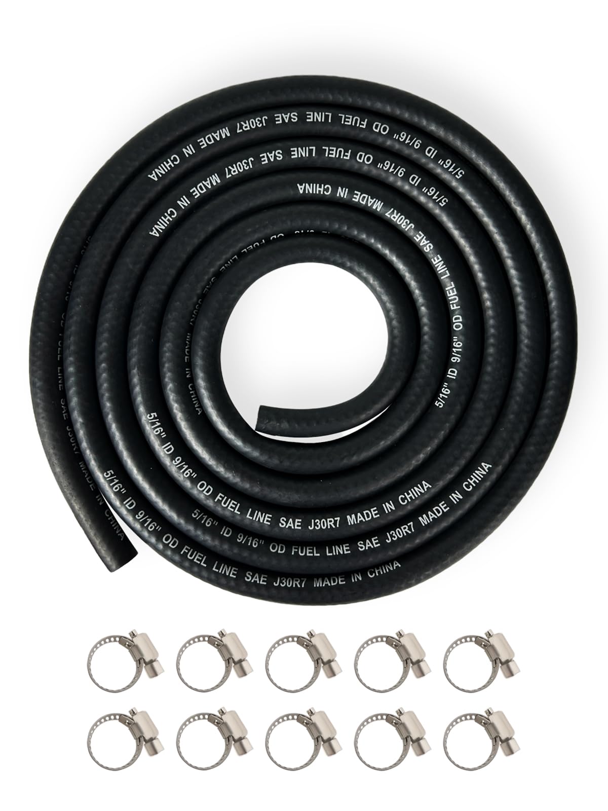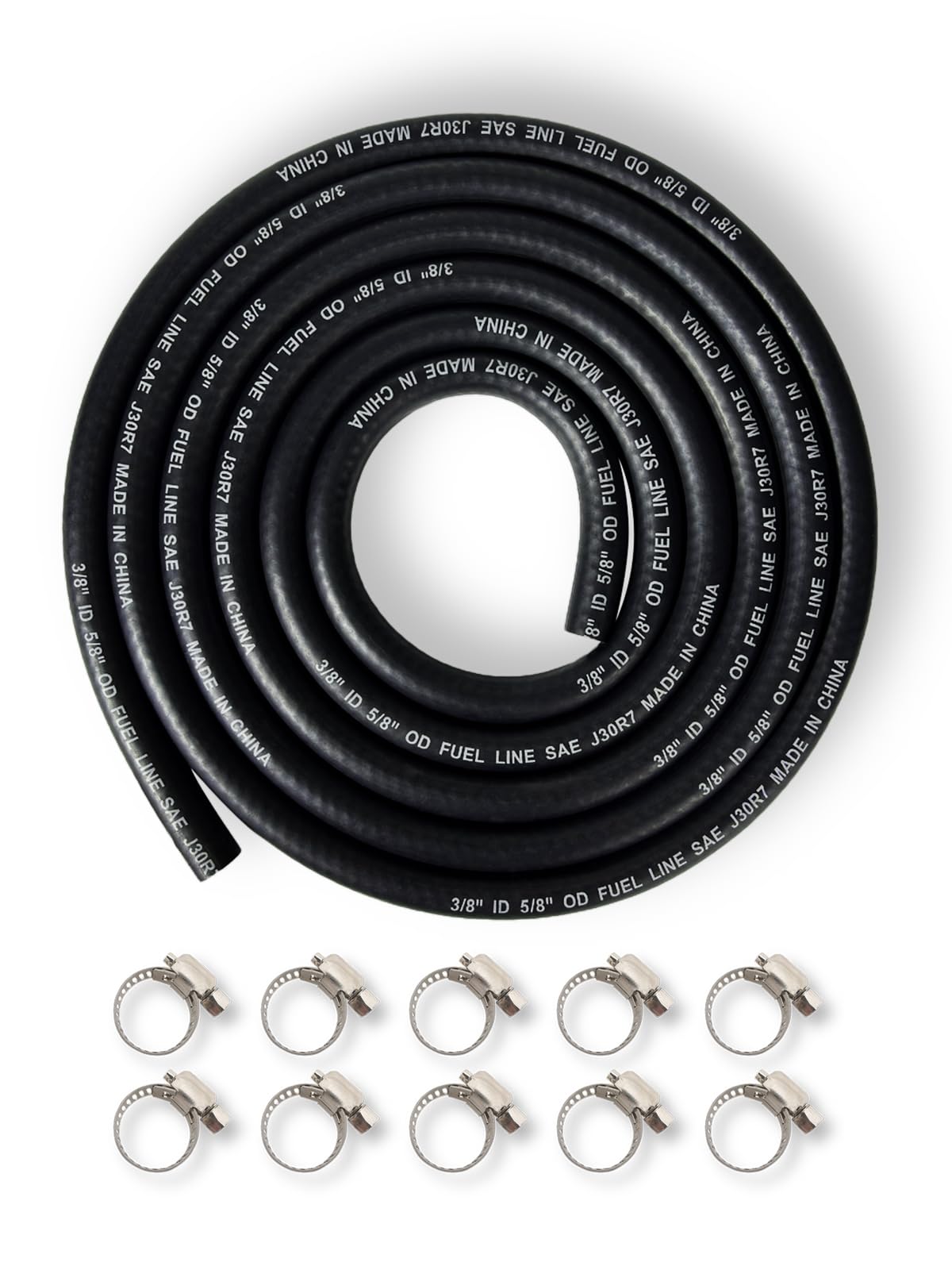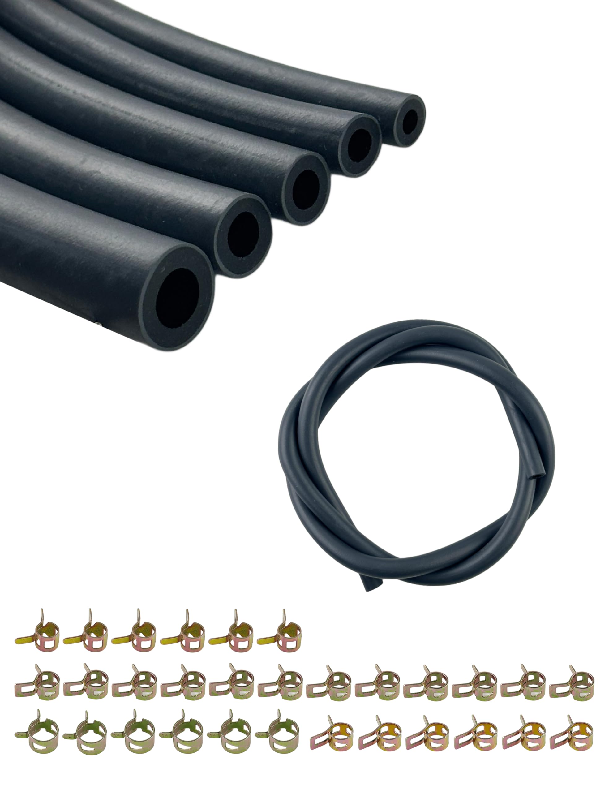 YAMAKATO 10 Feet 1/4 Inch ID Fuel Line Hose for Kawasaki Kohler Briggs & Stratton Small Gas Diesel Powersports Engines and Generators w/ 20 Clamp Rubber Black