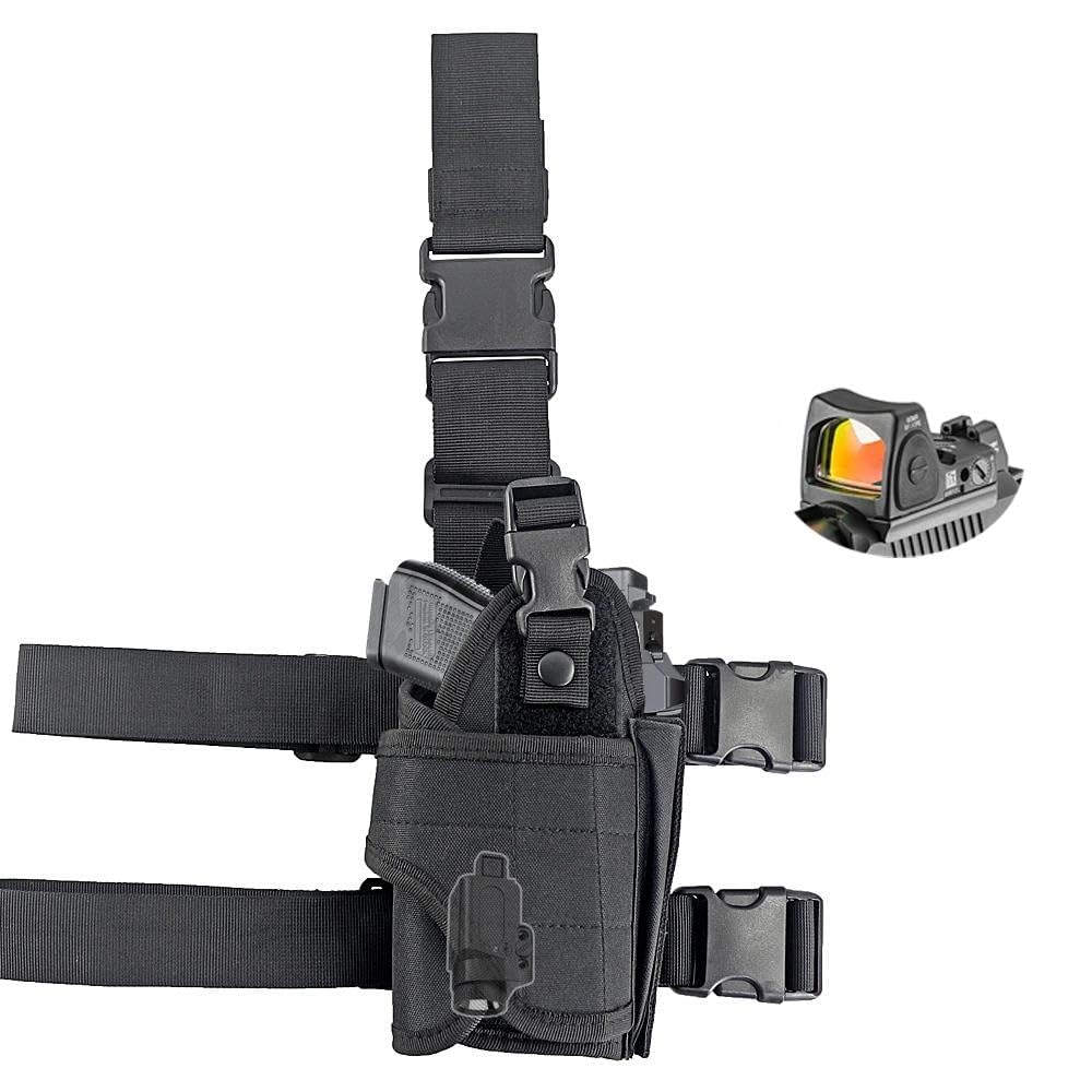 Funda universal Bursport para pistolas con láser o luz bajo el cañón, funda de cinturón con pierna caída para pistolas medianas y de tamaño completo