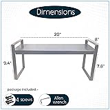 FEBTECH Kitchen Countertop Organizer Rack – Expandable Spice Rack Cabinet Shelf for Pantry, Bathroom, or Office – Silver Cupboard Stand for Kitchen Storage & Organization (20" x 8" x 9.4")
