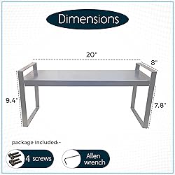 High Quality Built- This countertop organizer shelf is made of steel with 3mm surface plate thickness and 2mm support frame thickness. The organizer shelf can withstand a maximum weight of 30lbs. it is a sturdy and durable design. Also, the design is smooth finished which gives it a sleek look and enhances the attraction to your home decor, kitchen decor, and office decor. Save Space and Looks Sleek- It helps to create extra storage space on the countertop and make use of the wasted space, allowing you to maximize the storage space and save space on your counter. It could be used to sort items. It makes your countertop look more modern, tidy, and beautiful. Stackable- Two or more countertop organizer shelves of different sizes or the same size can be stacked to save space for storage. If you buy 2 or 3 of our countertop organizer shelves you can stack them one on top of another to increase storage capacity thus giving you a 2-tier or 3-tier storage shelf so you can store items at the bottom, in the middle, and on top of the shelf as per your need to save storage space. (Clips have to be purchased separately) Easy to assemble & Easy to clean- This countertop organizer shelf is easy to assemble by simply following the instruction. You just need to align the steel plate with two support frames and match the pre-holes given on the steel plate with the pre-holes provided on two support frames. And screw them tightly with an Allen wrench provided. You can simply clean this organizer shelf with cotton, cloth, or paper towel. Multipurpose Utility- This organizer shelf can be useful for your kitchen countertop, cabinet, pantry, cupboard, bathroom, windowsill, under the sink, garage, office, and more places. It is a great organizer to store plates, bowls, pans, spices, canned foods, condiments, jars, tableware, kitchenware, cosmetic items, shower gel, towels, toiletries, books, files, magazines, and other such things.