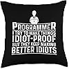 Programmer I Try To Make Things Idiot Proof Developer Nerd Throw Pillow