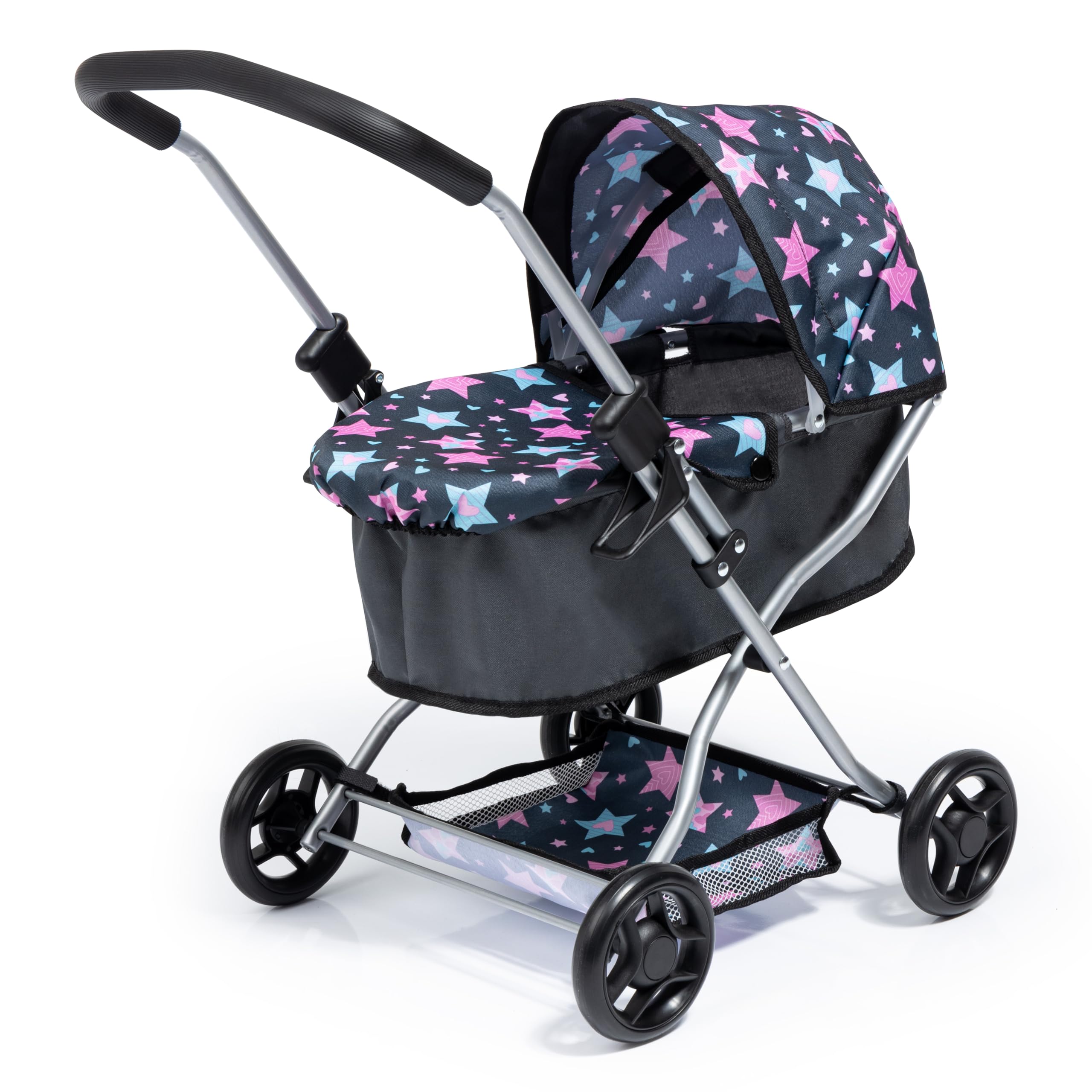 Muñecas de diseño Bayer: Carruaje Xeo: Gris y Rosa Mariposa - Bolso a juego, Asa ajustable, para muñecas hasta 20"