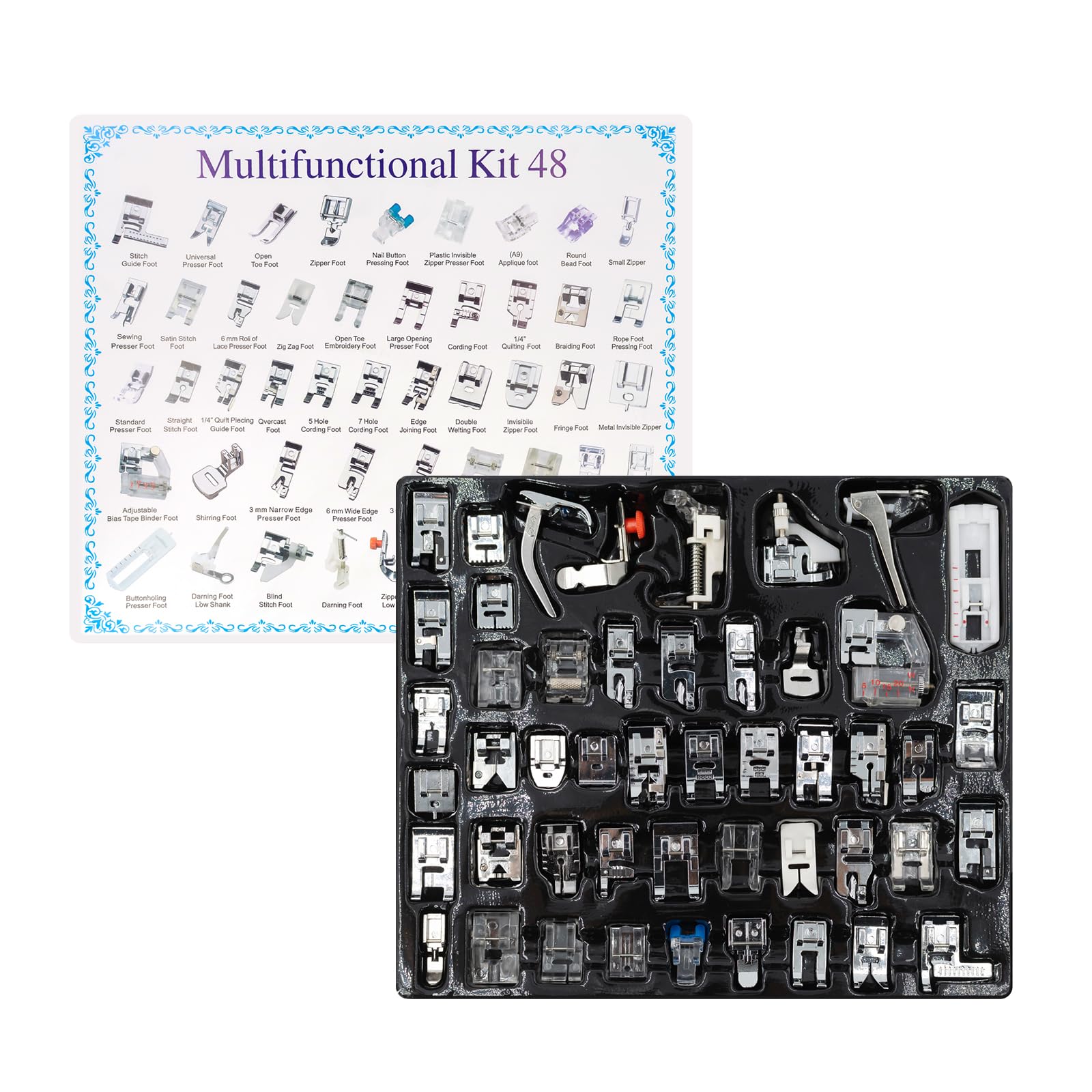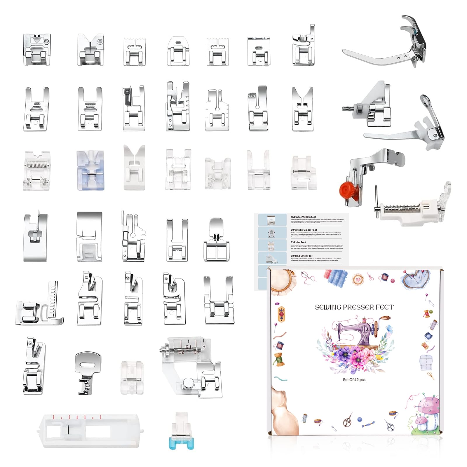 - Multifunctional Presser Feet 25pcs Kit: This 25 - piece presser foot set includes various types of presser feet ,fulfilling a wide range of industrial sewing needs such as handling leather, embroidery, zippers, buttons, beads, and being suitable for various industrial - scale sewing projects including special crafts, handicrafts, sewing, quilt - making, and curtain - making.