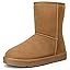 Jousen Men's Winter Boots Suede Snow Boot Leather Mid-calf Shoes Fur Lining
