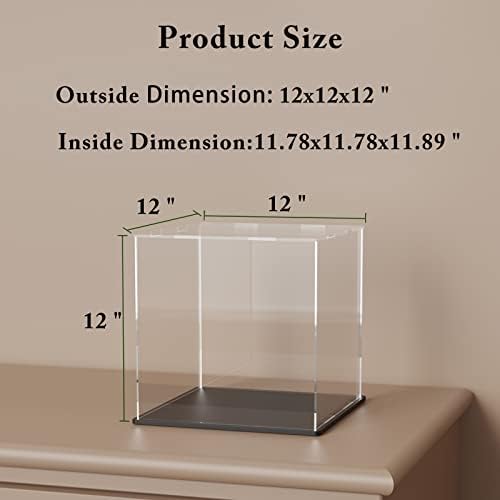 SVENJBB Acrylic Display Case, 12x12x12 Inch Cube, Clear Acrylic Box with Matte Black Base and Lid for Collectibles and Figures
