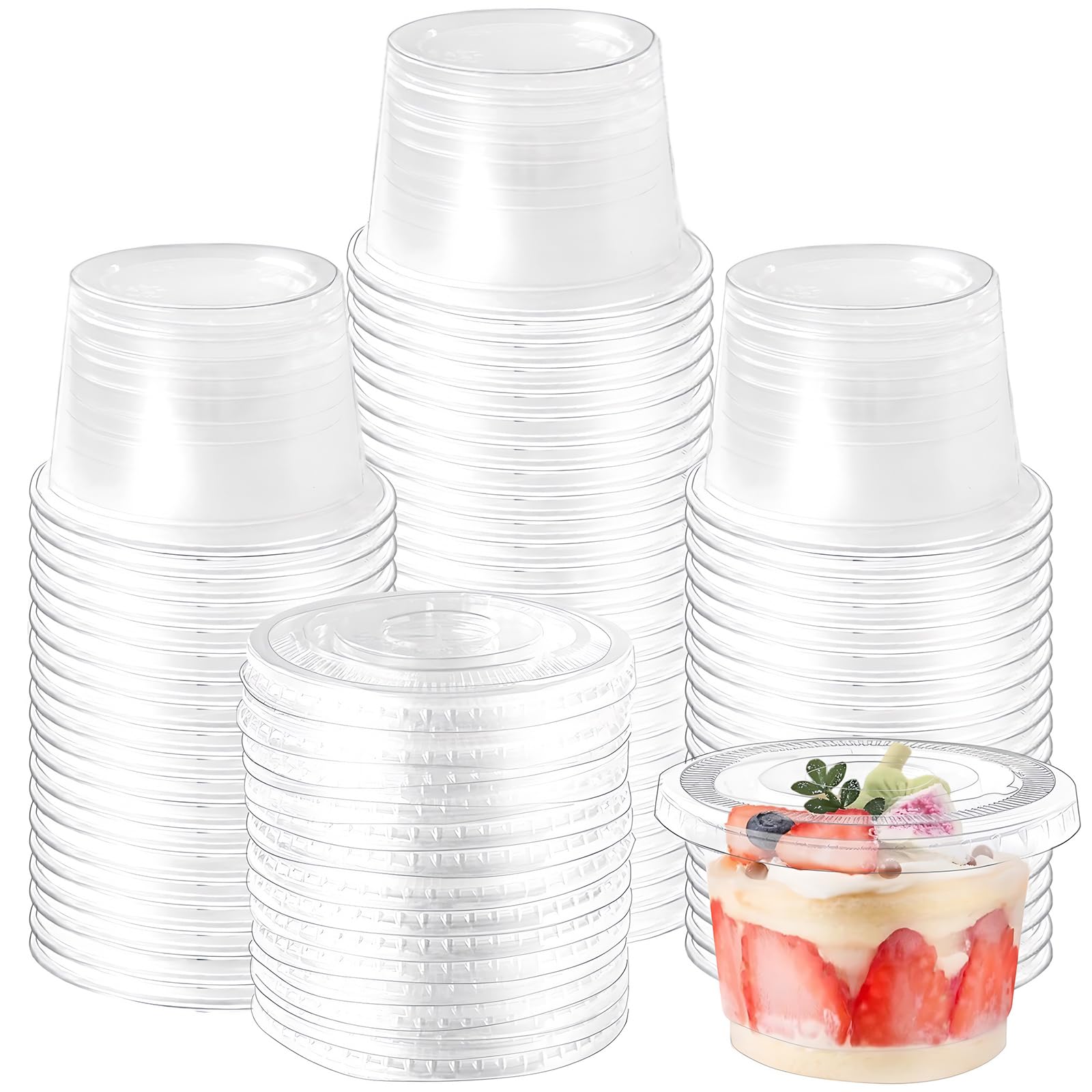 - Value Pack:The package comes with 100 pcs clear plastic food containers,value quantity enough for daily use.External size:5.2x4.5x2.8 inch/13.3x11.5x7.1cm, Internal size:4.3x4.2x1.4 inch/11x10.6x3.5cm.
