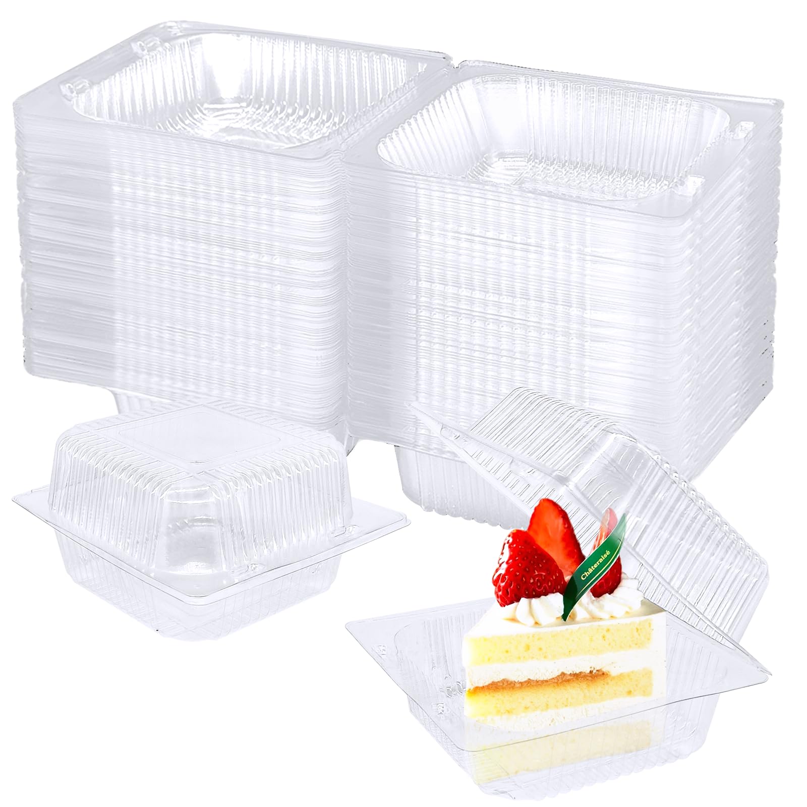 100 Pcs Clear Hinged Plastic Containers with Lids,Individual Cake Slice Containers,Square Plastic Food Container,Disposable Clamshell Take Out Containers for Cakes,Cookies,Pasta,Sandwiches,Salad