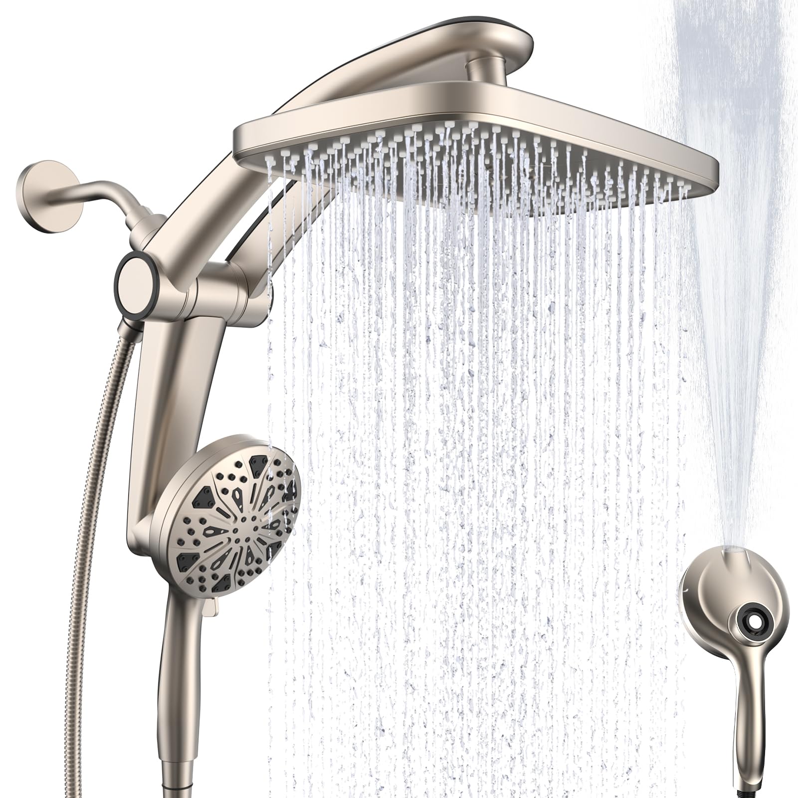 - Effortlessly switch between the immersive rainfall shower head for full-body relaxation and the focused high pressure handheld shower head for targeted cleaning or invigorating massage. Two showers in one for the ultimate convenience