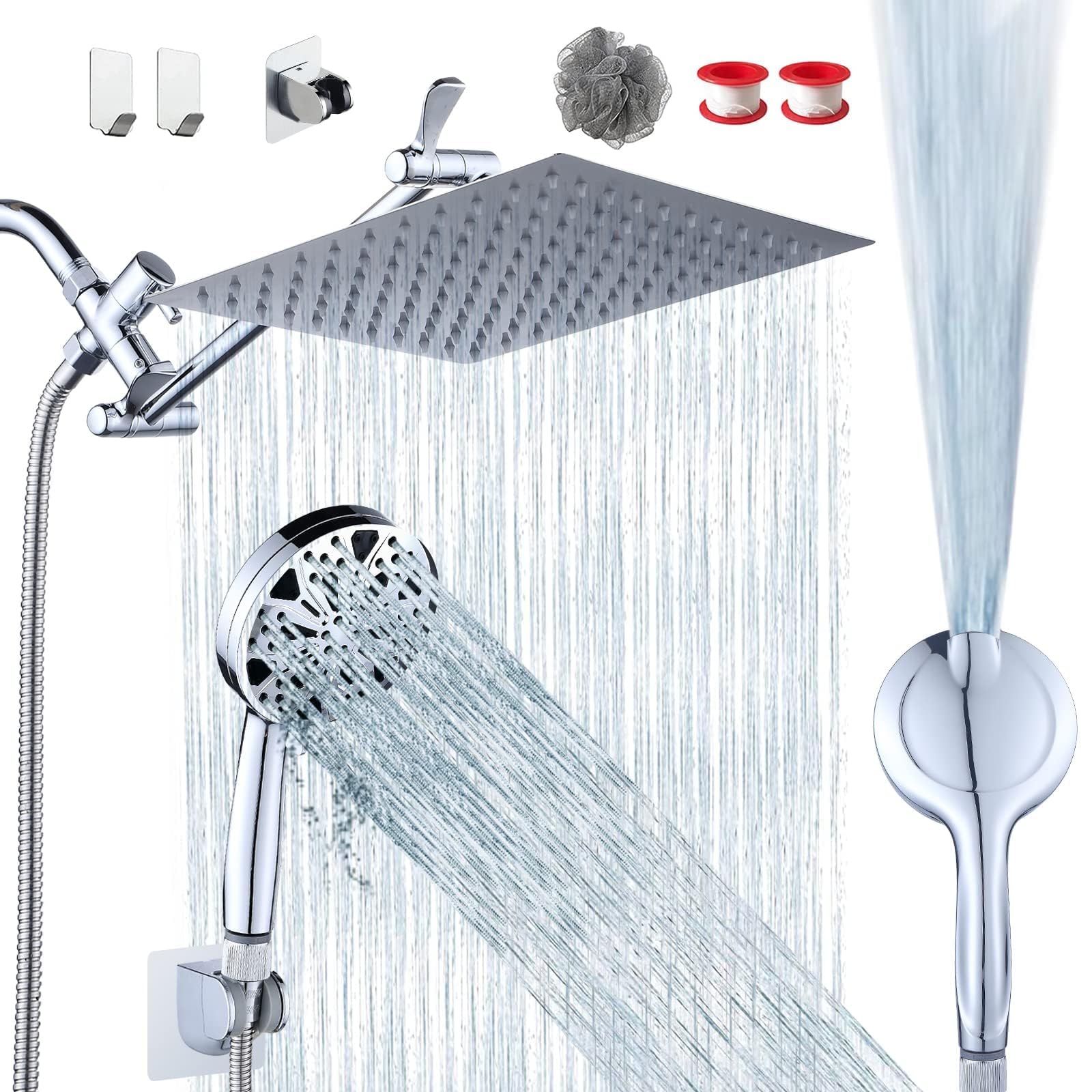 Rain Shower Head with Handheld High Pressure rainfall Shower Heads with Handheld Spray Combo Adjustable one-piece stand daul shower head Built-in Magnetic Docking and Power Jets
