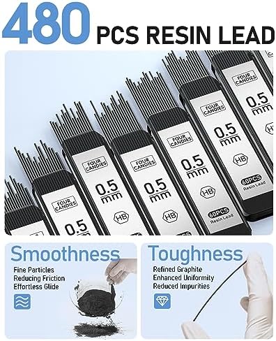 - 480PCS Resin Lead: 8 tubes of 60pcs super capacity leads; The stronger resin lead which doesn’t require sharpening and is not easy to break, provides ultra-smooth writing and clear dark lines