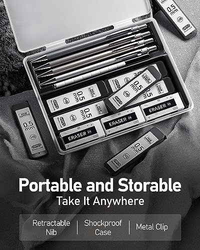 - All-in-One Set: The set contains 4pcs 0.5mm drawing mechanical pencils, 8 tubes of #2 lead (HB), 3pcs 4B erasers and 9pcs eraser refills; Includes a convenient case for easy storage and portability