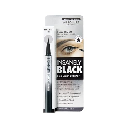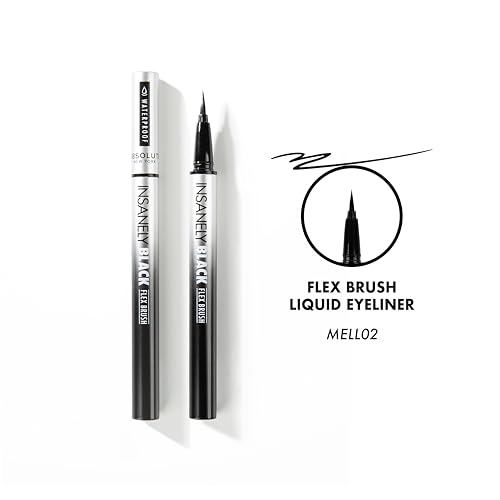Absolute New York Insanely Black Flex Brush Liquid Eyeliner, Flexible Tip, Waterproof & Smudgeproof, Long-Lating and Pigmented