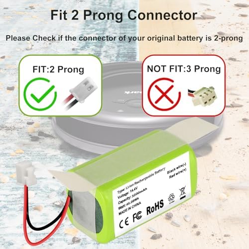 - 【Compatible with 2-Prong Connector Shark Robot Cleaners】Replacement battery for Shark Ion RV700_N, RV720_N, RV725_N, RV750_N, R75, R85, S87, RV771, RV761, RV850, RV850C, RV850BRN, RV851WV, RV871, RV871C, RV912S, RV913S, RV1000, RV1000S, UR1000SR, RV1001, RV1001AE, RV1100VL, AV751, AV752, AV753, AV911S, AV970. Please Note NOT compatible with Shark Ion RV700, RV720, RV750, and RV755, as these models are 3 prongs connectors (plug).