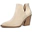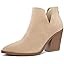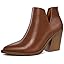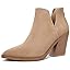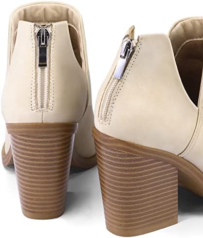 mysoft Women's Ankle Boots Slip on Cutout Pointed Toe Chunky Stacked Mid Heel Booties