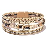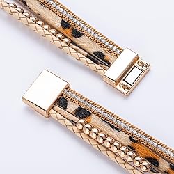 4-in-1 Stackable Bracelets: Features four unique leather strands—braided, beaded, an infinity charm, and a rhinestone strand—combined into one boho chic bracelet. Symbolic Infinity Charm: Represents endless love, timeless friendship, and everlasting connection. A deeply meaningful accessory for yourself or a cherished gift for her. Magnetic Clasp: It is easy to put on and take off the western bracelet with the high quality magnetic clasp. Measurements: Length: 7.5 Inch, Width: 0.7 Inch. Age: Over 8 years old.