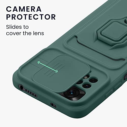 kwmobile Plastic Case Compatible with Xiaomi Redmi Note 11 / Note 11S - Case with Metal Stand Card Slot Finger Holder - Moss Green