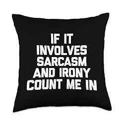 If It Involves Sarcasm & Irony, Count Me In - Funny Saying Sarcastic Gift Novelty Humor Trendy Witty Hilarious Cute Cool Funny Gifts, Funny Designs: If It Involves Sarcasm & Irony, Count Me In 100% spun-polyester fabric Double-sided print Filled with 100% polyester and sewn closed Individually cut and sewn by hand Spot clean/dry clean only